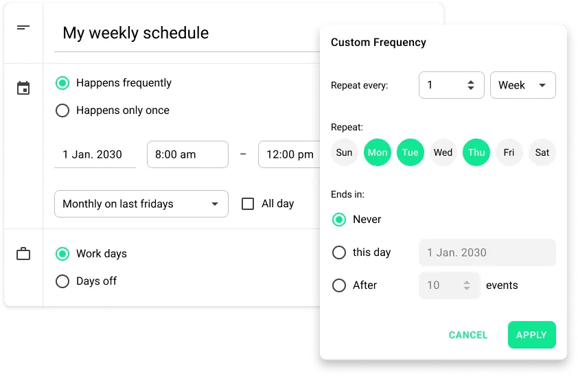 Вбудуйте наш віджет розкладу на свій сайт, щоб ваші клієнти могли професійно та ефективно бронювати, позбавляючися клопоту з численними листуваннями.