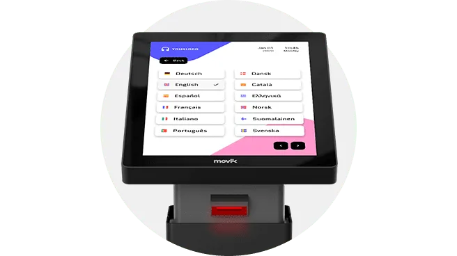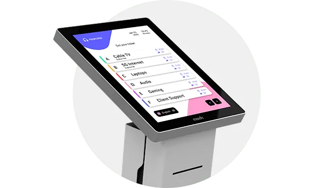 Клієнти, які надають перевагу цьому традиційному методу, можуть отримувати свої квитки на фізичному автоматі для видачі. Відображені та вибрані опції допоможуть провести скринінг ваших клієнтів і організувати черги.