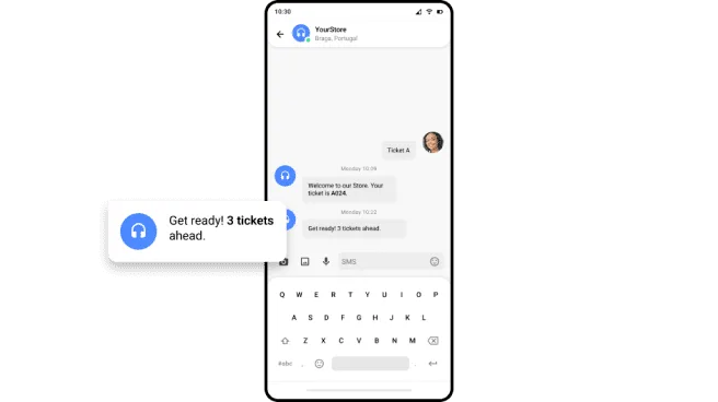 Клієнти надсилають SMS, щоб отримати квиток. Це дозволяє записатися до черги без фізичного очікування в ній.
